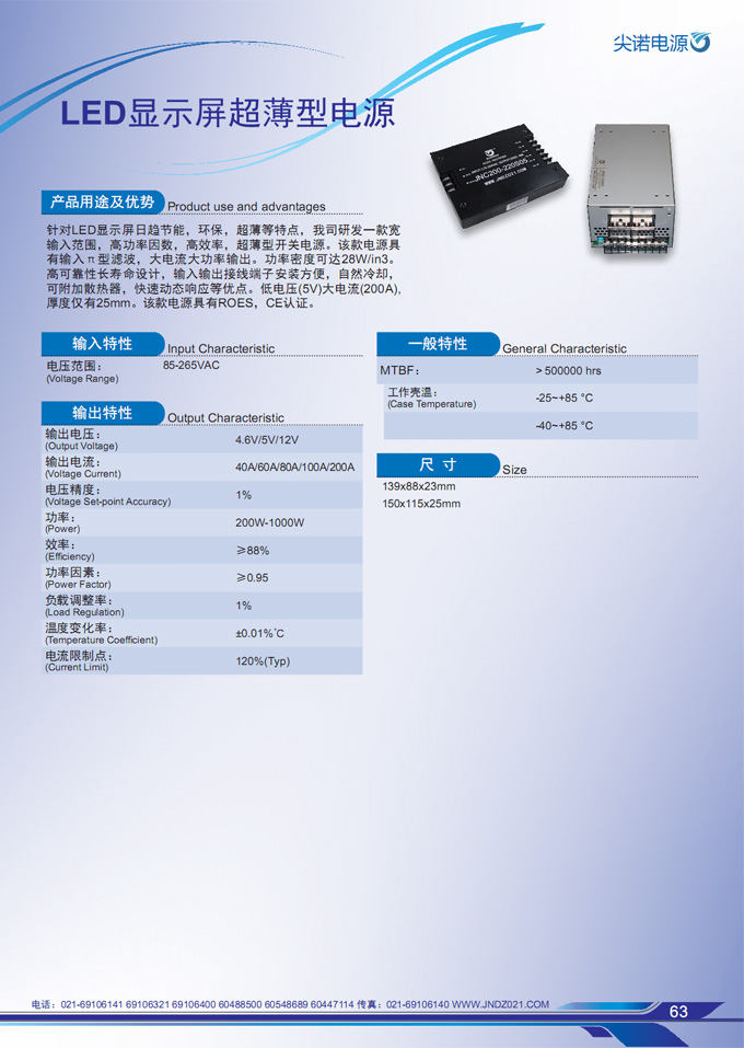 針對(duì)LED顯示屏日趨節(jié)能,環(huán)保,超薄等特點(diǎn),我司研發(fā)一款寬 輸入范圍,高功率因數(shù),高效率,超薄型開(kāi)關(guān)電源。該款電源具 有輸入π型濾波,大電流大功率輸出。功率密度可達(dá)28W/in3。 高可靠性長(zhǎng)壽命設(shè)計(jì),輸入輸出接線端子安裝方便,自然冷卻, 可附加散熱器,快速動(dòng)態(tài)響應(yīng)等優(yōu)點(diǎn)。低電壓(5V)大電流(200A), 厚度僅有25mm。該款電源具有ROES,CE認(rèn)證